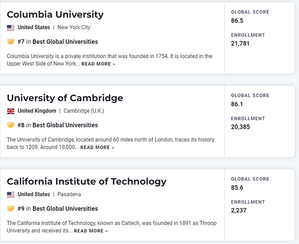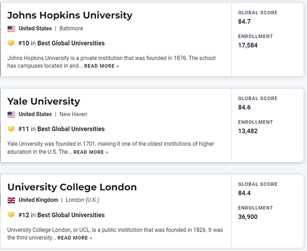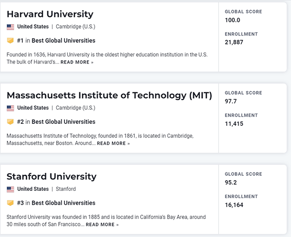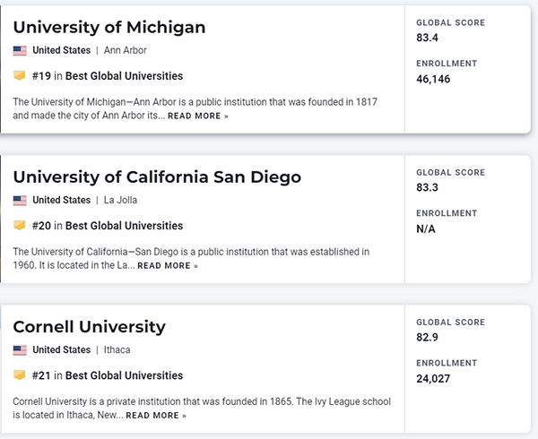 另外三大排名早在9月就陆续揭晓,U.S. News姗姗来迟,终于发布!