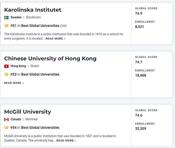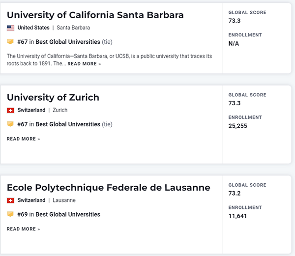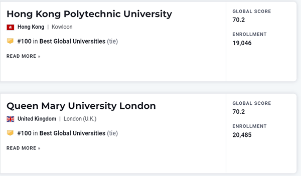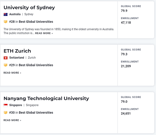 2023年度U.S. News世界大学排名TOP100
