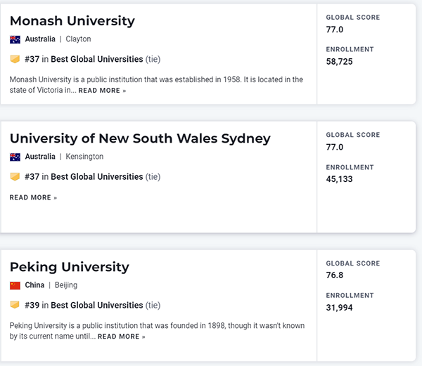 2023年度U.S. News世界大学排名