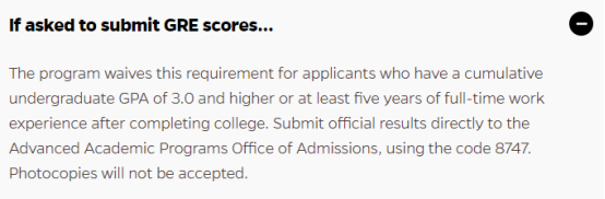 当然,这次的新项目对GRE成绩有要求了,不过申请者GPA达3.0以上就可免考GRE。