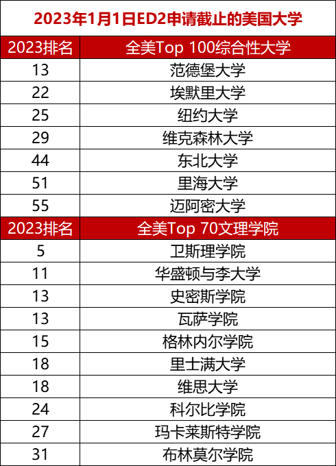 如今,早申放榜也快落下帷幕,很多同学都在准备后面的ED2和RD常规申请。而目前第一波RD的DDL就在1月1日,距离现在只有不到10天的时间了,下面为大家整理了2023年美国本科1月1日截止申请的大学,包括ED2轮次和RD轮次,不妨可以看看机会。