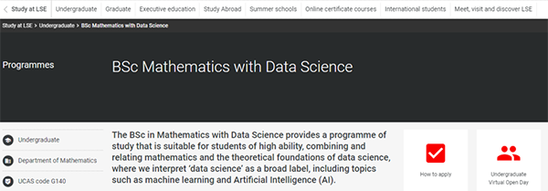 作为伦敦政经数学系所开设的专业之一,该专业还将重点探究数学在社会科学方向的应用,比如如何建立一个定量知识库,如何进行数据分析等等。