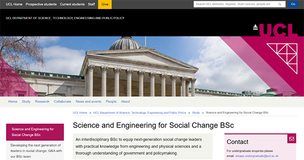 这是个理科交叉学科,由UCL工程学院的UCL STEaPP和UCL CEGE联合提供。在课程中,将从工程、社会和政治的角度学习广泛的主题。包括政策设计、项目管理、创新、工程设计和基础设施开发。