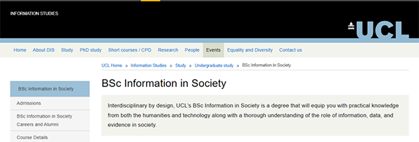 该专业开设在UCL East新校区,是个将人文社会学和信息、技术相结合的交叉学科专业。